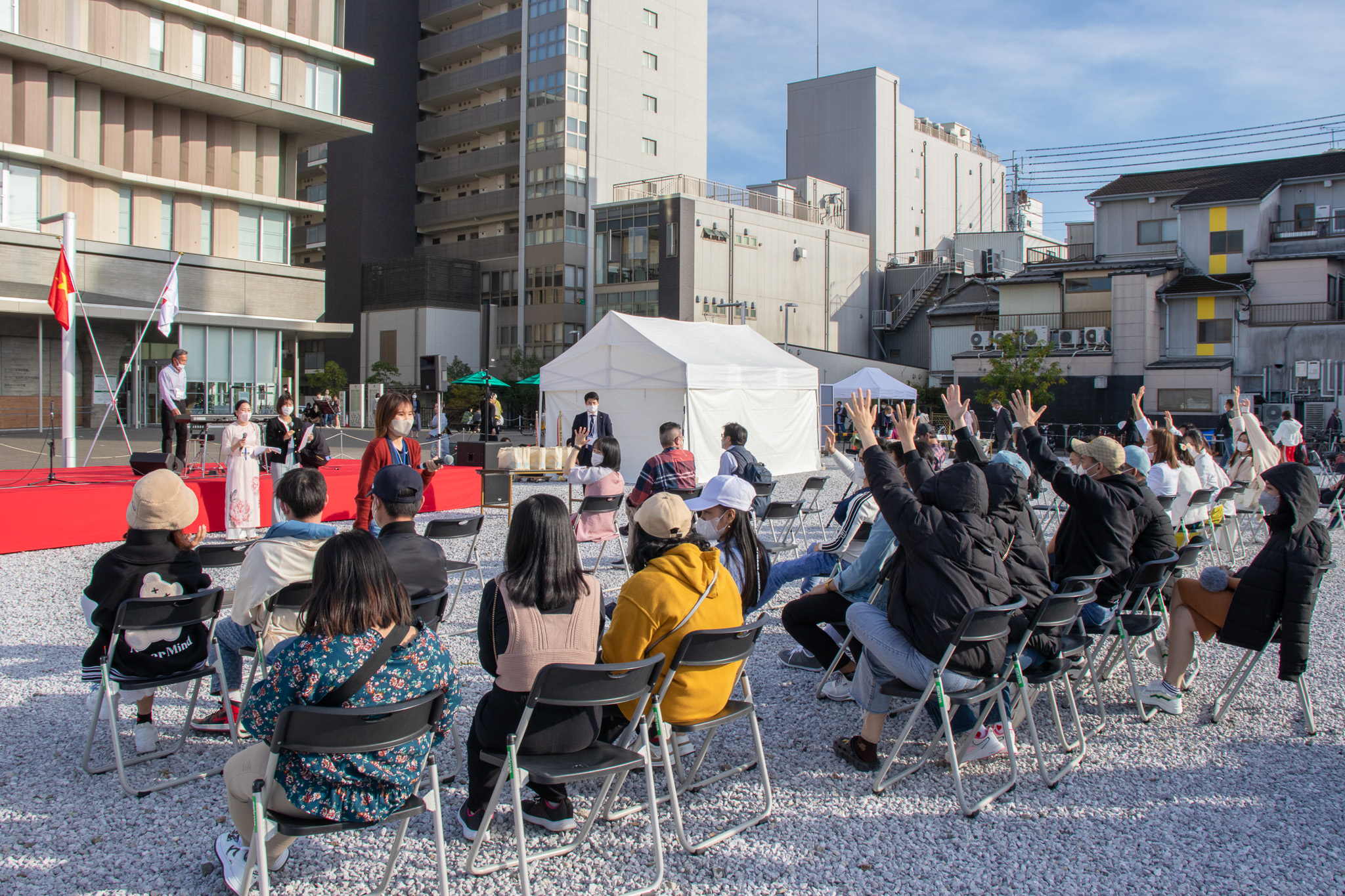 高知県とベトナムの友好親善、交流促進を目的として、オーテピア高知図書館の西敷地にて「秋の高知ベトナム交流会2022」が初開催されました。ベトナム特産品の販売やワークショップ、ステージではベトナム民謡・踊りの披露やトークショー、クイズ大会も開催され、大盛況のイベントとなりました。