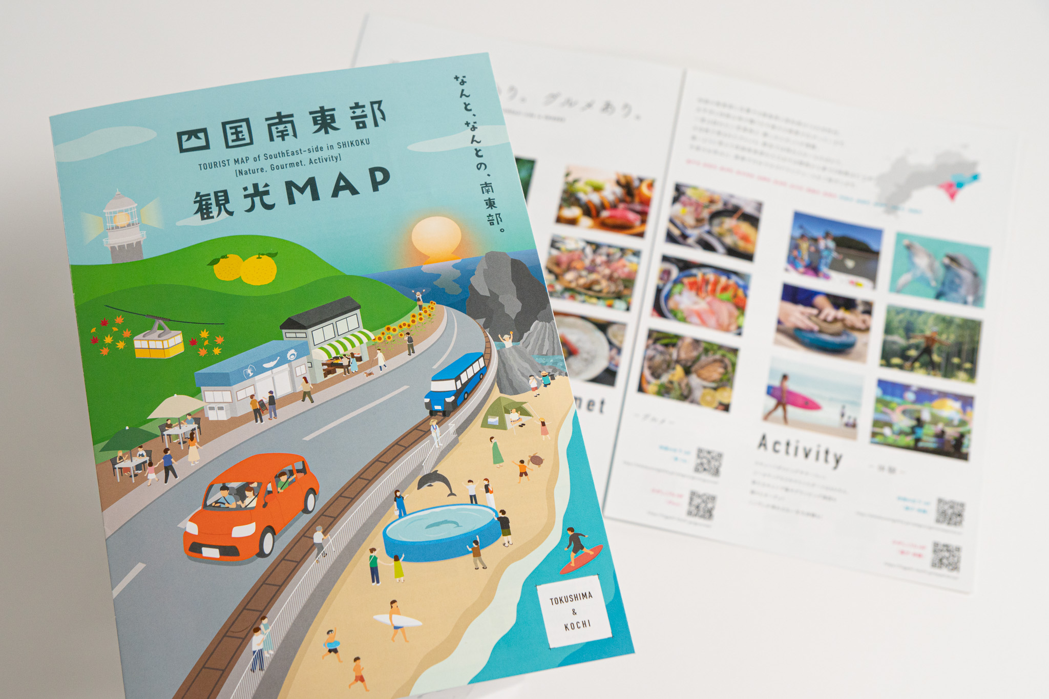 四国の南東部に位置する徳島県と高知県の14の市町村を紹介する観光MAPが完成。一度は訪れたい写真映え癒しスポットや、都会では味えないおすすめグルメが満載。季節ごとのおすすめコースも掲載しています。見かけた際はぜひ手に取ってみてください!
